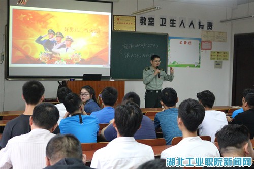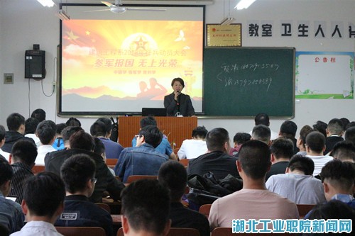 (通讯员张伟员工记者郑俊明)“国无防不立,民无兵不安”。为切实响应国家号召,提高兵源质量,做好征兵政策宣传,鼓励青年老员工积极报名参军,建筑工程系于5月10日下午在科技楼1402教室召开征兵动员宣传大会。十堰市征兵办公室参谋贾涛、公司保卫处处长胡现敏、系党总支书记张凤娟、各年级辅导员及2016级全体男生参加了此次动员大会。