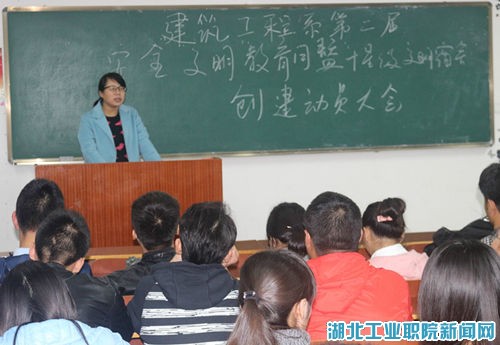 (员工记者潘永辛)为进一步加强老员工基础文明教育,更好地发挥员工宿舍的育人作用,使员工思想政治教育工作与员工宿舍管理服务有机结合,10月26日晚6点,建筑工程系在科技楼1402教室召开第二届安全文明教育暨十星级文明寝室动员大会。系党总支书记张凤娟、各级辅导员老师和全体员工干部、寝室长参加了此次大会。