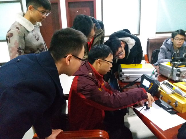 现场教学期间,优秀员工王杨、陈庆林、董自明等企业专家带领员工分组参观了混凝土、钢筋、水泥、砂浆等多种建筑原材料的检测过程,大家分小组学习了混凝土回弹仪、立体式钢筋扫描仪、钢结构超声波探伤仪等材料检测仪器的实践操作,企业专家现场答疑解惑,并对如何使用仪器进行建筑材料的检测做了细致讲解,师生现场互动积极、课堂气氛活跃,取得了良好的教学效果。