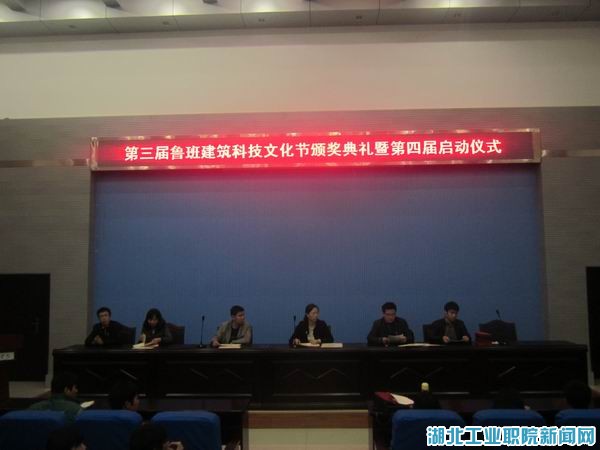新闻网讯(员工记者高祖快)为进一步弘扬鲁班精神,积极打造特色校园文化品牌,10月29日下午6点,建筑工程系第三届“鲁班建筑科技文化节”颁奖仪式暨第四届启动仪式在学术报告厅隆重举行。系党总支书记李爱萍、副书记王厚兵、工程造价教研室主任周文瑞、各级辅导员、系团总支员工会全体成员、大一大二全体班干部参加了本次仪式。