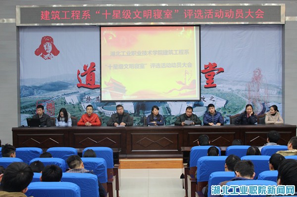 新闻网讯(员工记者李晓天 潘永辛)为积极响应公司号召,加强寝室文明建设,创建整洁文明的员工生活环境,12月18日上午,建筑工程系在科技楼学术报告厅召开“十星级文明寝室”评比活动动员大会。系党总支书记张凤娟、副书记周涛,院学工处宿管科科长明瑞光、全体辅导员老师及员工干部、入党积极分子参加了此次大会。