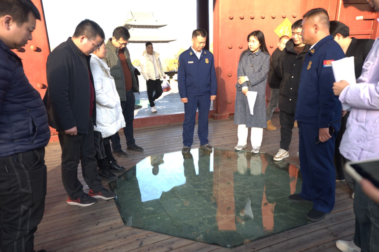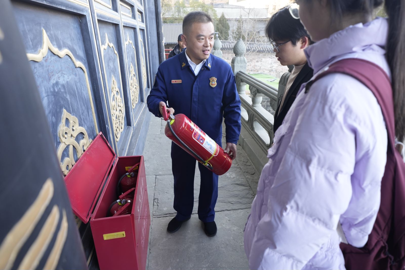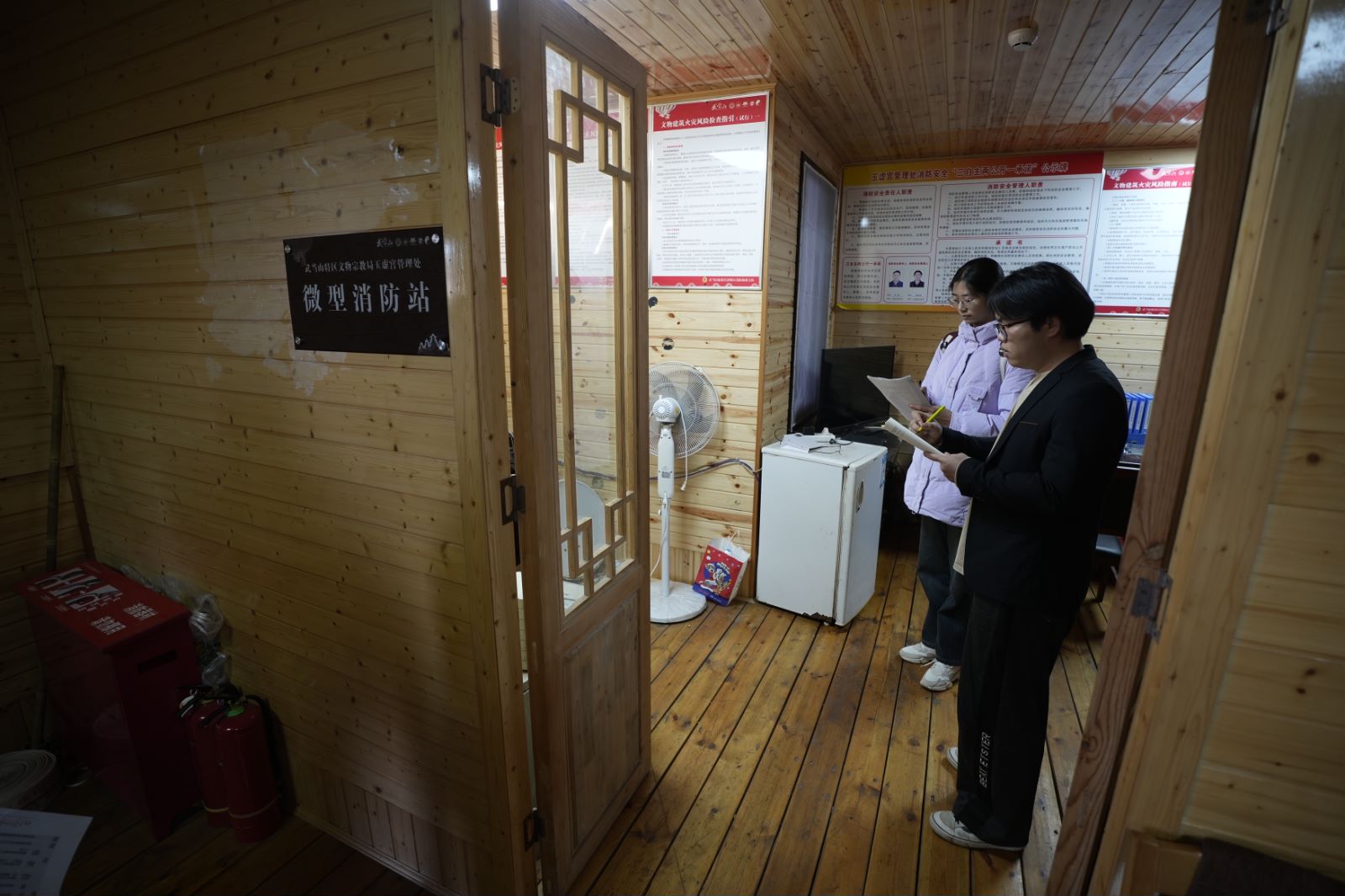 1月2日、9日,谈球吧员工志愿者先后在阚正武、张伟、杨硕老师的带领下,随同武当山旅游经济特区消防救援大队工作人员,走进武当山玉虚宫开展消防安全大检查,筑牢古建筑消防安全防线。武当山的古建筑多以砖木结构为主,耐火等级相对较低,为此,志愿者们对建筑内消防水源、灭火器配置、用电线路敷设、室外消火栓等情况进行了细致的查看,参观了玉虚宫内的微型消防站。员工志愿者对玉虚宫部分宫殿进行了实地测绘,并与武当山旅游经济特区消防救援大队开展文物古建筑场所预案制作研讨会。